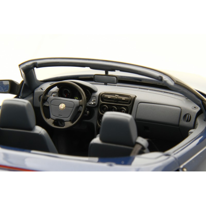 Alfa Romeo Spider 2.0 T.Spark 16V 1995, LM193F, modrá metalíza. Modely aut Laudoracing-Model v měřítku 1:18. Modely aut Alfa Romeo Spider 2.0 T.Spark 16V, modelový rok 1995, budou v modré metalíze vyrobeny v limitované edici 350 kusů. Alfa Romeo Spider byla vyráběna mezi roky 1993 a 2004, s facelifty v roce 1998 a 2003. Jednalo se o 2místný roadster s motorem vpředu a pohonem předních kol. V průběhu produkce byly kromě faceliftů provedeny další změny auta v roce 2000. V balení je dostupná snímatelná střecha a potisk pro verzi V6.
