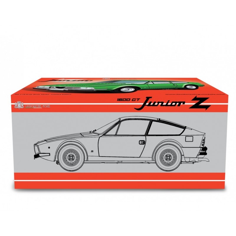Alfa Romeo Giulia Coupé 1600 GT Junior Zagato 1972, LM206E, stříbrná barva. Modely aut Laudoracing-Model v měřítku 1:18. Modely aut Alfa Romeo Giulia Coupé 1600 GT Junior Zagato, modelový rok 1972, budou ve stříbrné barvě vyrobeny v limitované edici 299 kusů. Alfa Romeo Giulia Coupé 1600 GT Junior Zagato byla vybavena řadovým čtyřválcem o objemu 1.6 litru a pětistupňovou manuální převodovkou. Šlo o dvoudveřové kupé představené na Turin Motor show v listopadu 1972, které nahradilo do té doby vyráběný vůz Alfa Romeo Giulia Coupé GT Junior Z s objemem motoru 1.3 litru.