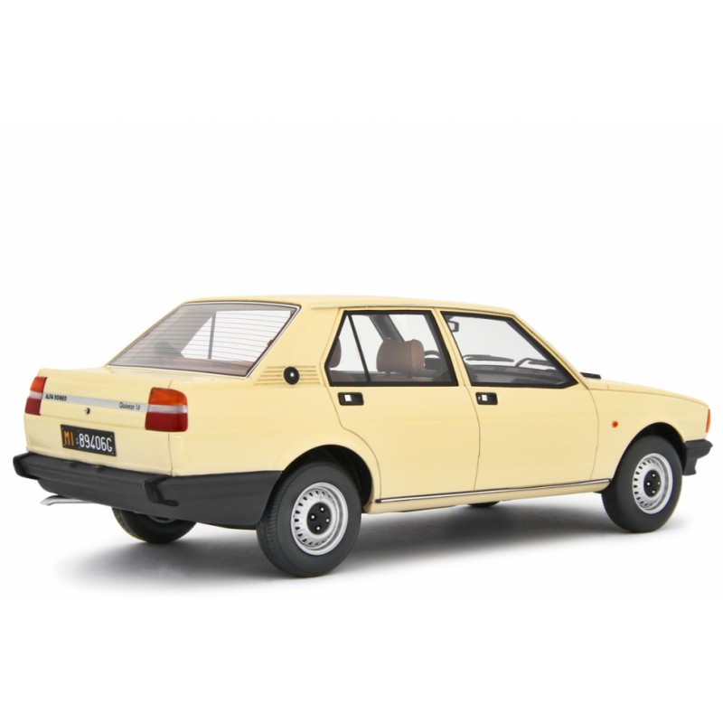 Alfa Romeo Giulietta 1.6 1980, LM205C, béžová barva. Modely aut Laudoracing-Model v měřítku 1:18. Modely aut Alfa Romeo Giulietta 1.6 - 1.8, modelový rok 1980, budou v béžová barvě vyrobeny v limitované edici 250 kusů. Alfa Romeo Giulietta byla představena v listopadu roku 1977, a ačkoli převzala své označení od dřívějšího modelu Giulietta, vyráběného mezi roky 1954 s 1965, byla postavena na základě modelu Alfa Romeo Alfetta. Šlo o čtyřdveřový sedan s manuální pětistupňovou převodovkou a původně s benzínovými motory o objemu 1.3 a 1.6 litru. V roce 1979 přibyl benzínový motor o objemu 1.8 litru (součástí balení je potisk pro tuto verzi). Předchůdce modelu Alfa Romeo Giulietta byla Alfa Romeo Guilia, nástupce pak byla Alfa Romeo 75.