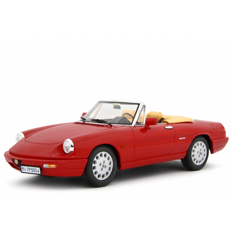 Dvoudveřový roadster s plátěnou střechou Alfa Romeo Spider byl vyráběný ve 4 generacích od roku 1966 do roku 1993. Alfa Romeo Spider měla dvoumístnou karoserii, jejíž design vytvořilo studio Pininfarina, čtyřválcové motory uložené vpředu a pohon zadních kol. V letech 1990 až 1993 byla vyráběna 4. generace Alfa Romeo Spider, která měla elektronické vstřikování Bosh, motory o objemu 1.6 litru a 2.0 litru a dostupná byla manuální i automatická převodovka. Oproti předchozí generaci byly provedeny také úpravy designu. Předchůdce byla Alfa Romeo Giulietta Spider a nástupce Alfa Romeo Spider série 916 s pohonem předních kol. Modely aut Alfa Romeo Spider 1.6 - 2.0i 1990 jsou dostupné v 6 barvách karoserie a v každém balení je přibalena odnímatelná střecha.