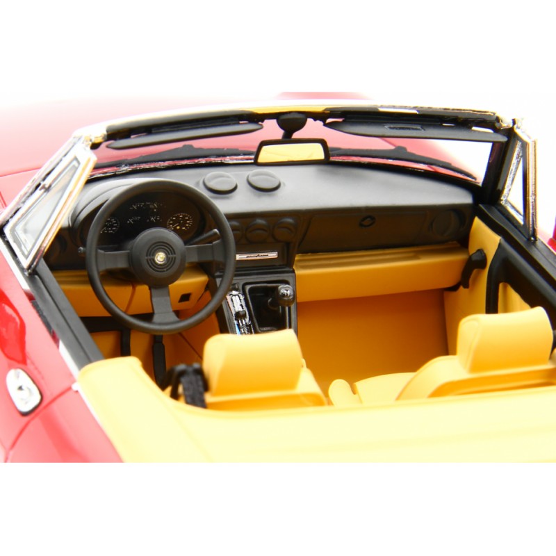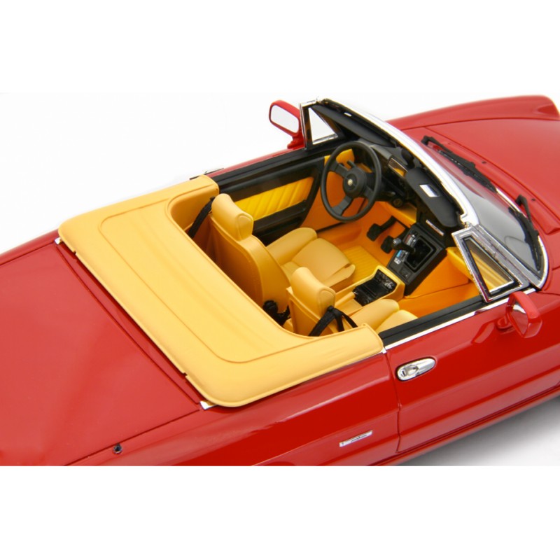 Alfa Romeo Spider 1.6 - 2.0i 1990, LM209A, červená barva. Modely aut Laudoracing-Model v měřítku 1:18. Modely aut Alfa Romeo Spider 1.6 - 2.0i, modelový rok 1990, budou v červené barvě vyrobeny v limitované edici 350 kusů. Alfa Romeo Spider série 105/115 byla vyráběna mezi roky 1966 a 1993 celkem ve 4 generacích. Jednalo se o 2místný roadster s motorem vpředu a pohonem zadních kol. V letech 1990 až 1993 byla vyráběná 4. generace tohoto vozu s motory 1.6 a 2.0 litru, poté začala výroba nástupce Alfa Romeo Spider série 916 s pohonem předních kol.