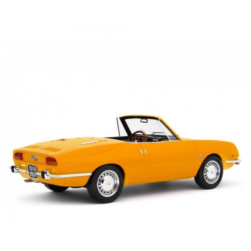 Fiat 850 Sport Spider 1968, LM148B, žlutá barva. Modely aut Laudoracing-Model v měřítku 1:18. Resinové modely aut Laudoracing-Model jsou vyráběny v sériích o malém počtu vyrobených kusů. Modely aut Fiat 850 Sport Spider 1968 mají několik barevných odstínů, pro žlutou barvu je stanoven počet pouze 250 vyrobených kusů. Fiat 850 byl představen v roce 1964 jako nástupce Fiatu 600 a Fiat 850 Spider byl představen o rok později na autosalonu v Ženevě. Karoserii verze Fiat 850 Spider navrhla firma Bertone, šlo o dvoumístný roadster s výkonnějším motorem a lepší výbavou, než měl Fiat 850. Verze Fiat 850 Sport Spider vznikla v roce 1968, měla navýšený výkon díky vyššímu objemu motoru a drobné změny v designu.