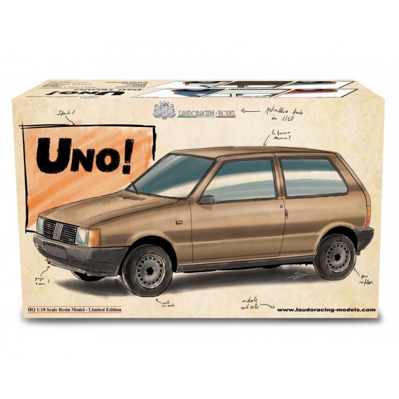 Fiat Uno 45 1983, LM158A, červená barva. Modely aut Laudoracing-Model v měřítku 1:18. Modely aut Fiat Uno 45 1983 budou v červené barvě vyrobeny v limitované edici pouze 180 kusů! Resinové modely aut Laudoracing-Model jsou vyráběny v sériích o malém počtu vyrobených kusů. Fiat Uno se v Itálii vyráběl od roku 1983 a ve světě v různých podobách až do roku 2014. Fiat Uno byl nástupce vozu Fiat 127, jednalo se o tří a pětidveřový hatchback s designem od Giorgetta Giugiara a s místem pro 4 cestující. Druhá série byla vyráběna od roku 1989. Nástupce byl Fiat Novo Uno od roku 2010.