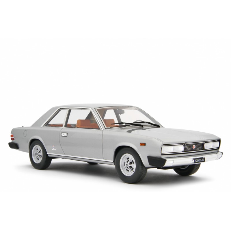 Fiat 130 Coupe 1971, LM143H, stříbrná barva. Modely aut Laudoracing-Model v měřítku 1:18. Resinové modely aut Fiat 130 Coupe, modelový rok 1971, budou ve stříbrné barvě vyrobeny v limitované edici pouze 250 kusů. Fiat 130 Coupé byl představen na ženevském autosalonu v roce 1971, 2 roky po představení verze sedan. Fiat 130 Coupé vzbudil oproti kupé velký ohlas díky svému atraktivnějšímu designu od studia Pininfarina. Fiat 130 Coupé měl oproti sedanu změněný interiér a rozměry a také výkonnější motor, jinak měl stejný technický základ jako sedan. Celkově nebyl Fiat 130 prodejně úspěšný, jeho nástupce byla v rámci koncernu Lancia Gamma.