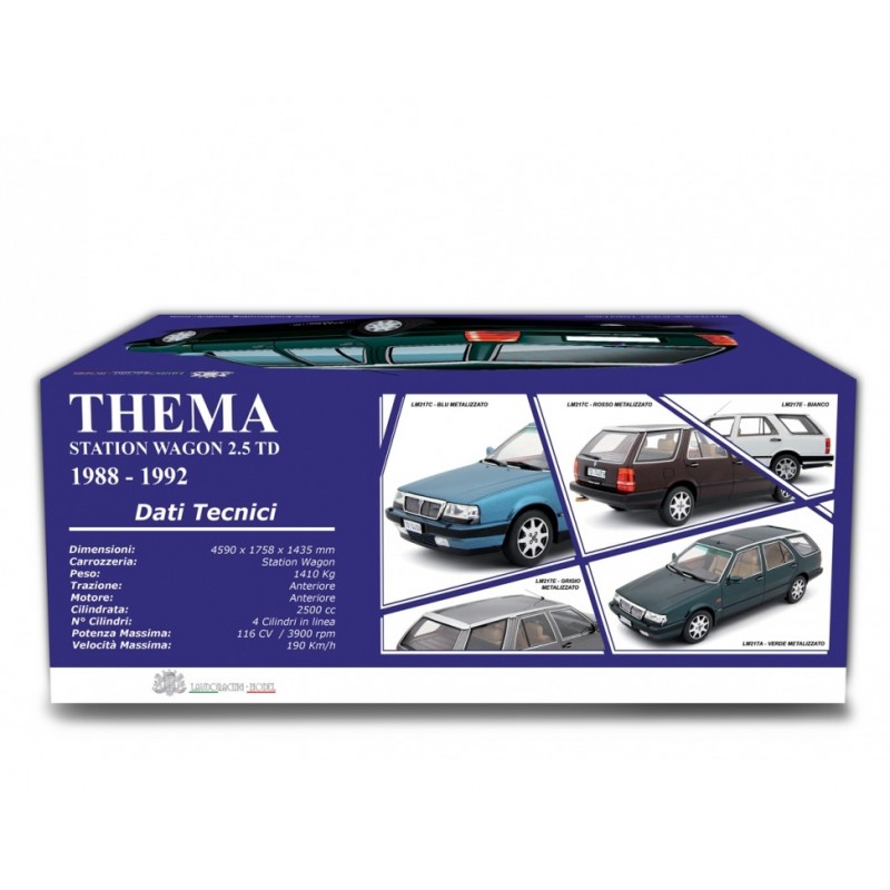 Lancia Thema byla vyráběna mezi roky 1984 až 1994, jednalo se o výsledek spolupráce automobilek Fiat a Saab. Z této spolupráce vznikla nejen Lancie Thema, ale také Saab 9000, Fiat Croma a Alfa Romeo 164, které měly společnou podlahovou plošinu, některé mechanické díly a základní skelet karoserie. Prestiž Lancie jako výrobce výkonných a luxusních vozů podpořila verze se šestiválcovým motorem o objemu 2,8 litru, vyvinutá ve spolupráci automobilek Peugeot, Renault a Volvo. V roce 1986 byla představena verze kombi s názvem Lancia Thema Station Wagon, jejíž design navrhlo studio Pininfarina. Mírné úpravy prodělala Lancia Thema na konci roku 1988, další evoluce byla na podzim 1991 a poslední vývojový posun bylo v roce 1993 uvedení vrcholné verze Lancia Thema LX s nejvýkonnějším turbo benzínovým motorem. Od roku 1994 byla Lancia Thema nahrazena řadou Lancia Kappa. Označení Lancia Thema se vrátilo v roce 2011, kdy na evropských trzích s levostranným řízením byl takto označený Chrysler 300C. Modely aut Lancia Thema Station Wagon T.D. 1988 jsou vyrobeny v 5 barvách karoserie5
