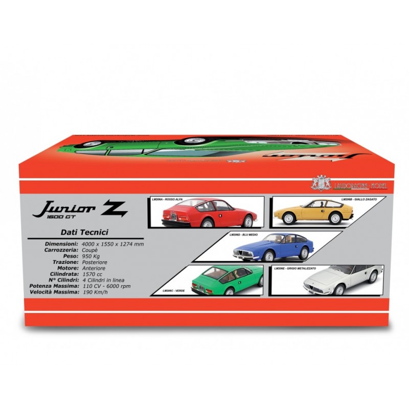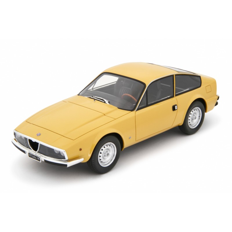 Resin model cars Alfa Romeo Giulia Coupé 1600 GT Junior Zagato 1972, LM206B, yellow color. Resin model cars by Laudoracing-Model, 1/18 scale. Limited edition 299 pieces.