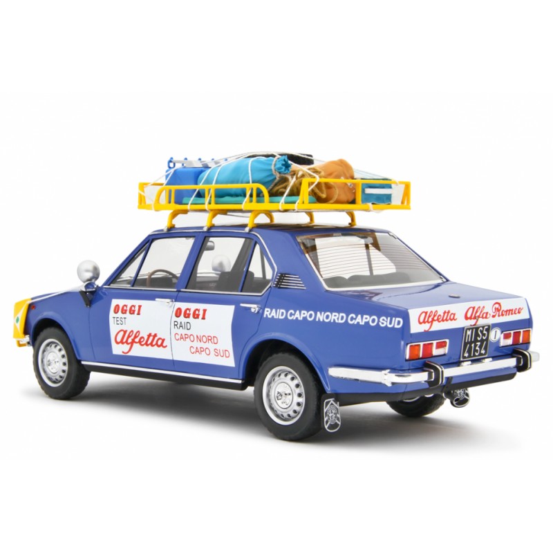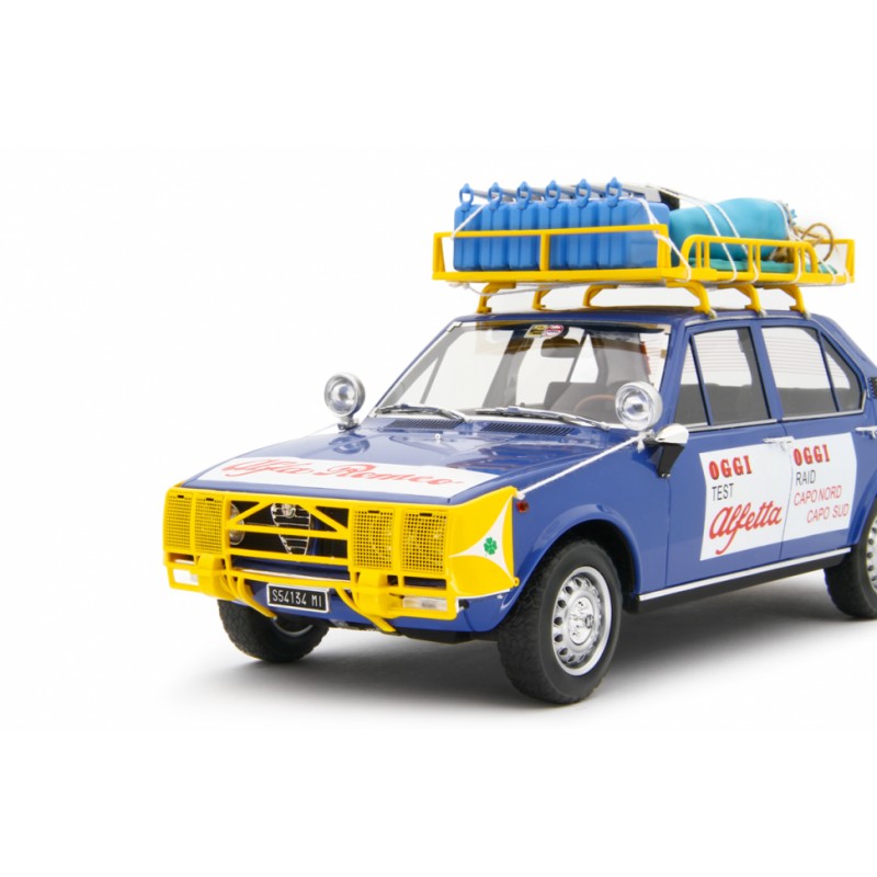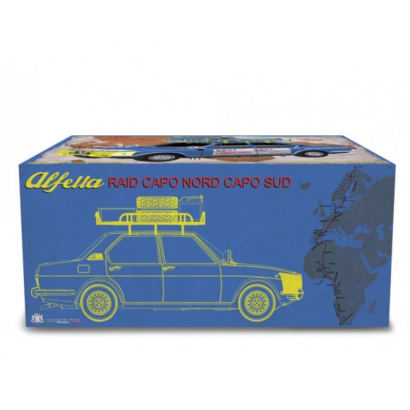Alfa Romeo Alfetta 1.8 Raid Capo Nord Capo Sud 1973, LM208A, color blue. Resin model cars by Laudoracing-Model, 1/18 scale.